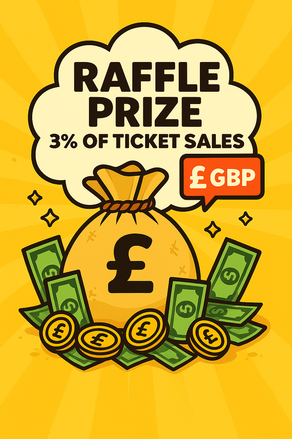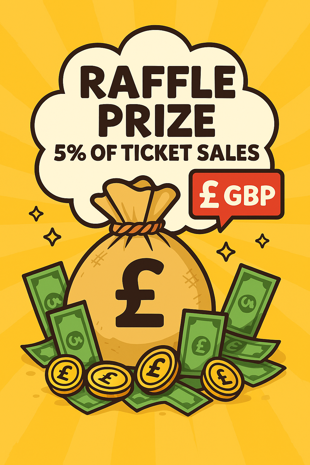 Top prize is a massive 20% of ticket sales - this means that if we sold 2,000 tickets, the lucky top prize winner could receive £400! (Example only - actual prize value depends upon number of tickets sold).